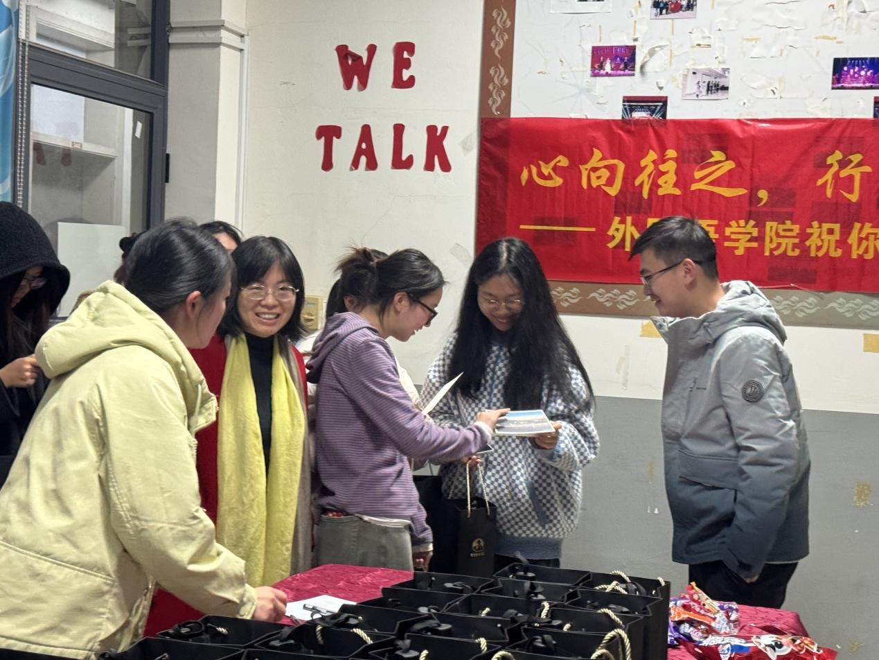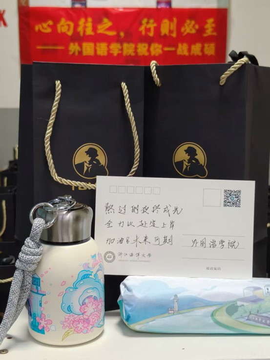 活动筹备的夜晚,辅导员助理们的身影在学院办公室里忙碌不停。印有海大标识的保温杯,愿为熬夜刷题的学子守住一份温热;融入海大特色的定制雨伞,盼为奔赴考场的路途遮风挡雨;而每一张手写祝福卡,或娟秀工整,或洒脱飞扬,字里行间满是 “愿你笔锋所至皆坦途” 的殷切期盼、“坚持到底便是胜利” 的真诚鼓励。这份 “温暖三件套” “甜蜜棒棒糖”,藏着学院的牵挂、师长的惦念、学弟学妹的祝福,在送达考研学子手中时,化作了无声却坚定的力量。