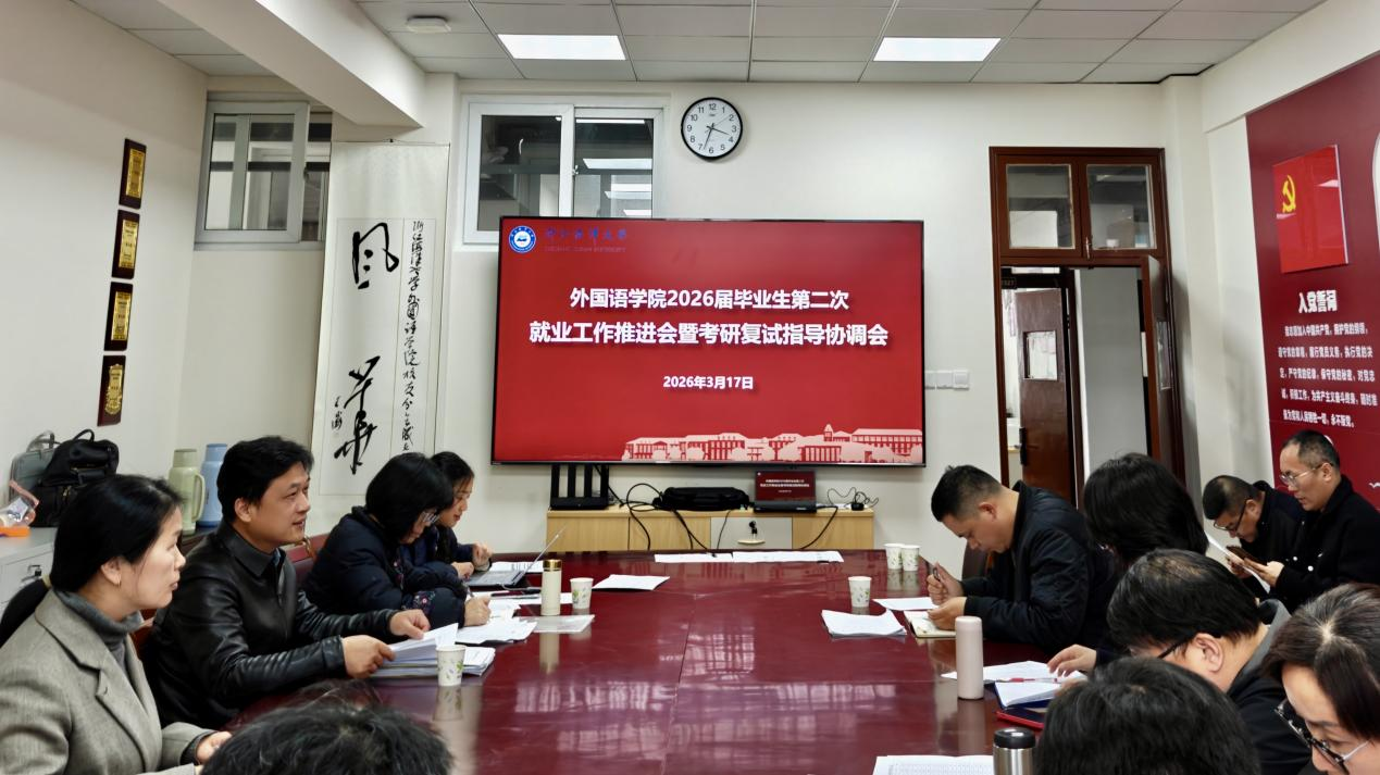 会上,学院党委副书记佘红艳传达了学校就业工作会议精神,学院就业工作辅导员石鹰婷通报了2026届毕业生就业进展、考研情况和具体帮扶需求。