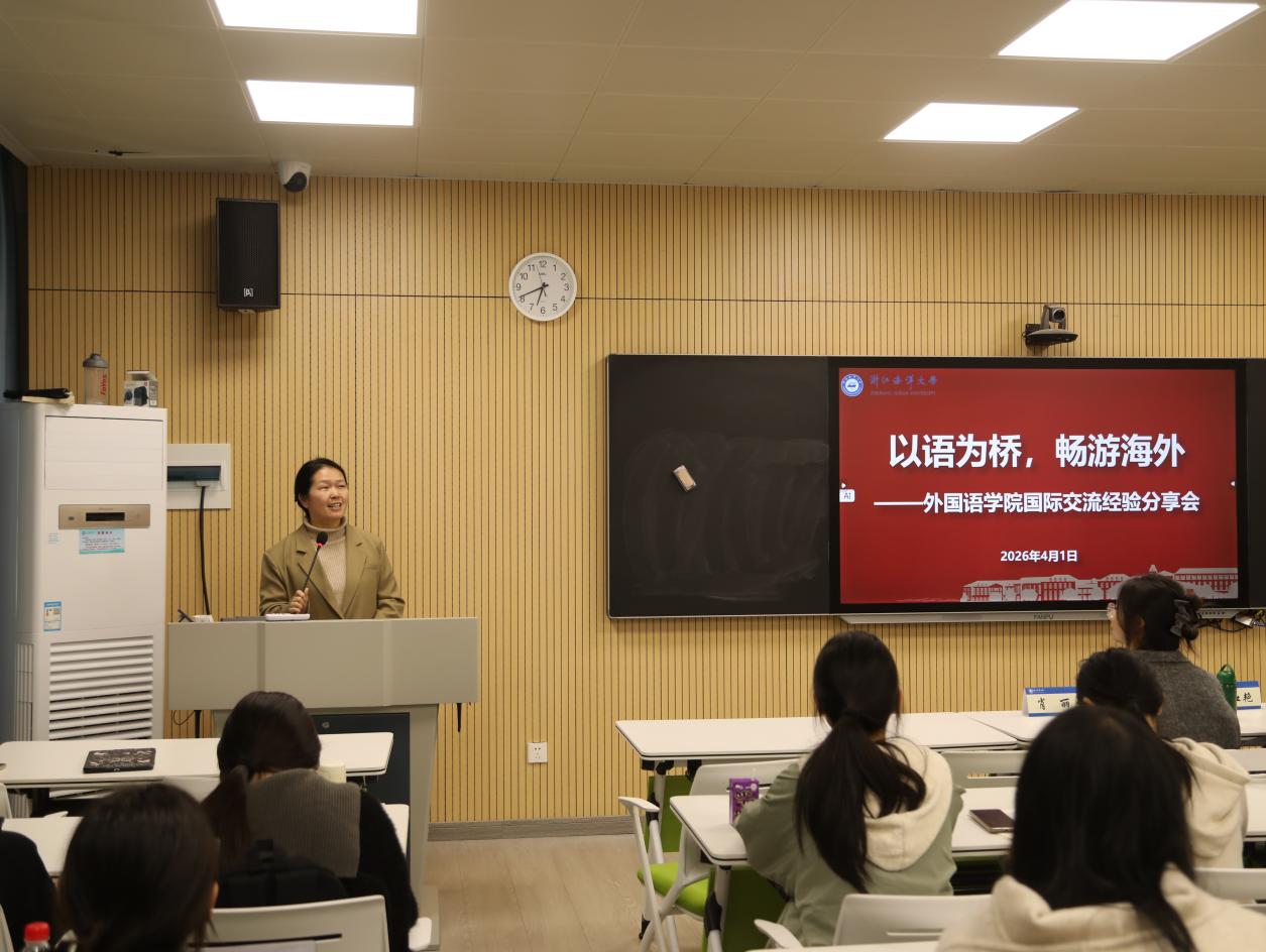 在定海校区4369教室举办“以语为桥,畅游海外”国际交流经验分享会。学院院长钟伟良出席活动并讲话,党委副书记兼纪委书记佘红艳主持,3位曾参与海外国际交流项目的优秀学子受邀分享。